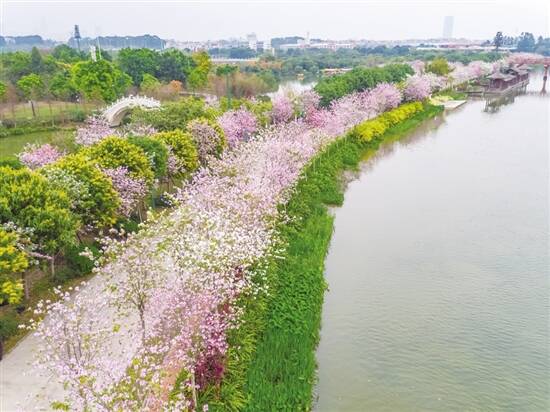 紫荆、木棉、黄槐、簕杜鹃、异木棉、凤凰木、小叶紫薇、宫粉紫荆、黄花风铃木……生活在四季见绿的羊城,不管是哪个季节,都可以沉醉在绿意花海之中。阳春时节,广州市民网友“晒”出的“花花世界”的地点遍布全市,一条条花景大道、一个个林荫街区成为“网红”,让人赏心悦目,与春天撞个满怀。