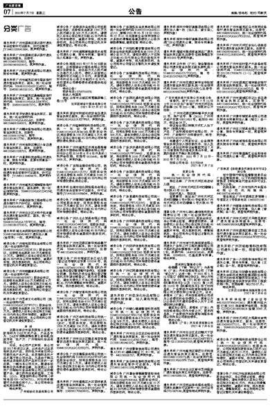 遗失声明 李平安遗失营业执照正、副本,统一社会信用代码:92440101MA5A65L642,注册号:440104600554309,现声明作废。