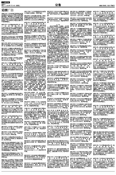 遗失声明 广州市龙晶动漫科技有限公司遗失营业执照副本,统一社会信用代码:91440101070163403P,编号:S2612014078999(1-1),现声明作废。