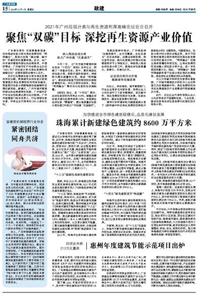 广东建设报讯 记者刘洁、通讯员赵丽霞报道:日前,惠州市住房和城乡建设局发布《关于2021年度惠州市绿色建筑专项资金奖励示范项目评审结果的公告》,广东荣盛业杭萧钢构装配式建筑产业化生产基地项目、龙光城商业中心等4个项目获评示范项目,共计获得210万元的市级绿色建筑专项资金奖励。