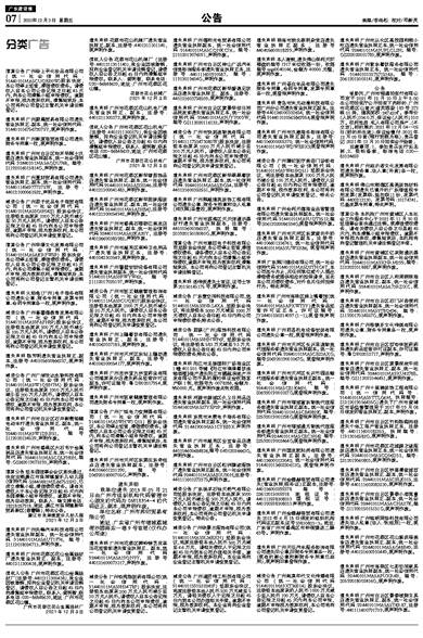 遗失声明 广州上膳餐饮有限公司遗失营业执照正、副本,注册号:4401062037185,现声明作废。