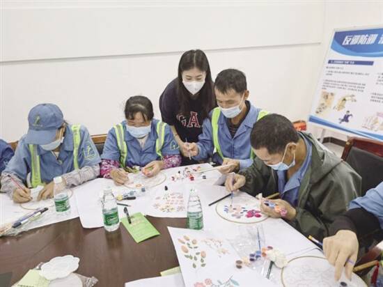 此外,主办方还策划了一堂特别的团扇美术课。在老师的鼓励和帮助下,环卫工人纷纷拿起画笔,在团扇上绘出心中向往的“无邪大岗”,以一把独一无二的反邪团扇,表达自己远离邪教的决心。绘画环节后,大家评选出3幅优秀的作品,并由反邪志愿者为作者颁发奖品。