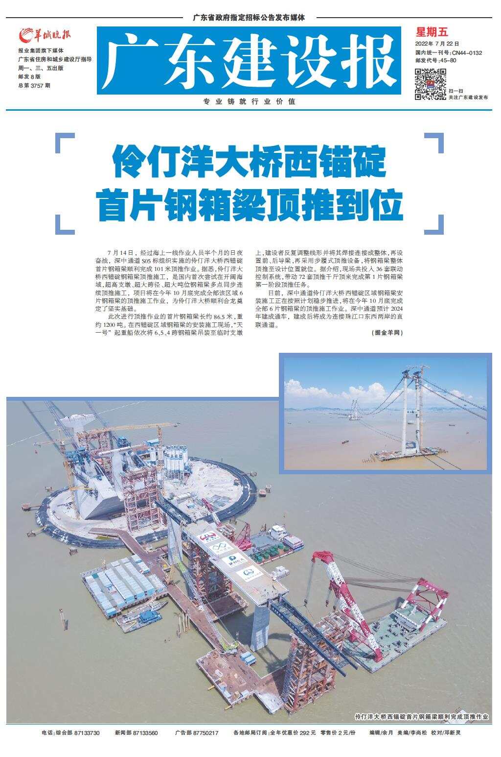 伶仃洋大桥西锚碇 首片钢箱梁顶推到位