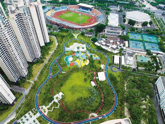据介绍,为了给市民提供优质的公共公园空间,去年湛江市城管局在实地调研碧海社区体育公园所处地块的综合情况后,充分考虑了紧靠体育中心的地缘特点,并结合目前市区公园相对缺乏儿童户外运动型设施的实际情况,该局深入践行“人民城市”的理念,在公园定位设计、设施配置、色彩搭配、绿植选用方面处处彰显“绣花功夫”。