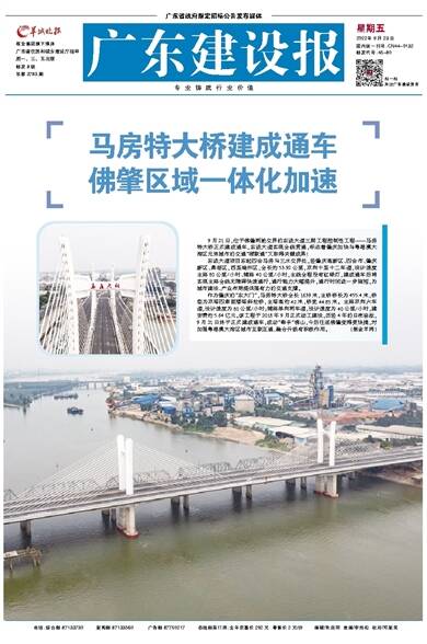 作为肇庆的“东大门”,马房特大桥全长1639米,主桥桥长为455.4米,桥型为双塔四索面矮塔斜拉桥,主塔高约42米,桥宽44.85米。主路双向六车道,设计速度为80公里/小时;辅路单向两车道,设计速度为40公里/小时,建安费约5.64亿元。该工程于2018年9月正式动工建设,历经4年的日夜奋战,9月21日终于正式建成通车,成功“牵手”佛山,今后往返佛肇变得更快捷,对加强粤港澳大湾区城市互联互通、融合升级有积极作用。 (据金羊网)
