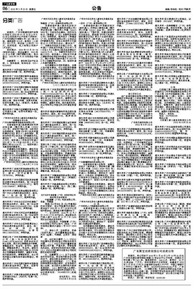 遗失声明 广东无边界广告传播有限公司遗失营业执照正、副本,注册号4400002005430,统一社会信用代码91440000MA581MAR31,声明作废。