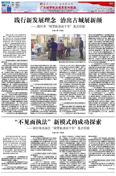 深圳市辖区面积排名第二的龙岗区,总面积达388平方公里,下辖11个行政街道,常住人口近400万;而在编且有执法权的城管队员仅152名,每人平均负责2.55平方公里执法任务。面对城管执法事项“点多、面广、量大、人少”的特殊情况,龙岗区城市管理和综合执法局(以下简称龙岗区城管和综合执法局)发扬特区先行先试精神,借鉴交警简易执法模式,率先探索“不见面执法”新模式,以创新实现突围,取得良好效果: