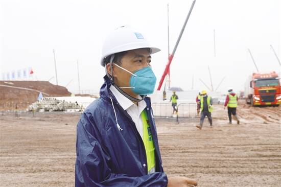 记者在如火如荼的项目建设现场见到了奔走指挥的肖明,他和施工人员一样穿着雨靴行走在泥泞的工地中,不到10分钟的时间里,他已经接了四五个电话。