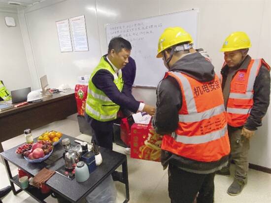 作为第一批返岗工人,来自河南安阳的迟建博大年初六便来到了项目现场。“项目给报销了返岗路费,过完春节来到这边多做点活,多点收入。”迟建博表示。为欢迎农民工友返岗,该项目工作人员与农民工友举行了茶话会,致以节日问候,并发放节日红包和慰问品,让工友在返岗第一天感受到“新春”的温暖。