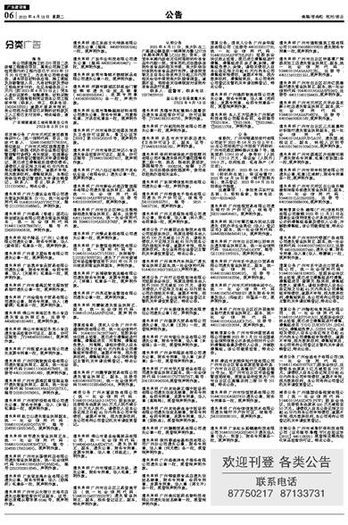 遗失声明 广州起阳科技有限公司遗失公章一枚,现声明作废。