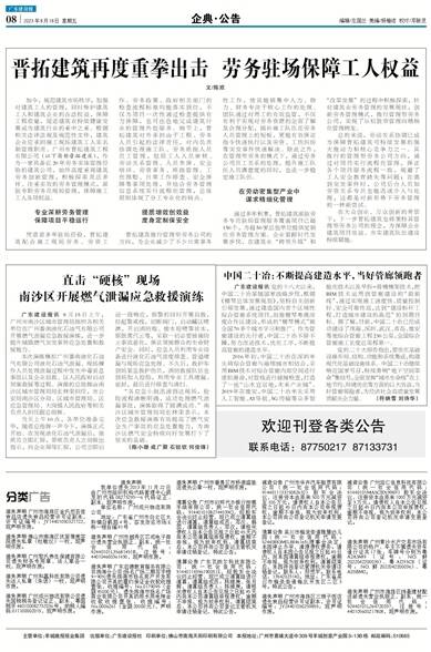 主管单位:羊城晚报报业集团 出版单位:广东建设报社 印刷单位:佛山市南海天阳印刷有限公司 本报地址:广州市黄埔大道中309号羊城创意产业园3-13B栋 邮政编码:510665