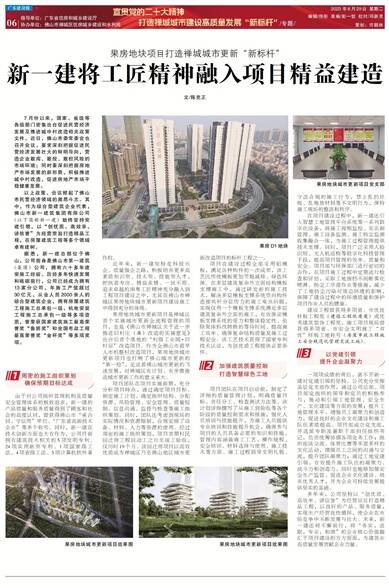 近年来,新一建坚持走科技兴企、质量强企之路,积极培养更多高素质知识型、技术型、技能型人才,把执着专注、精益求精、一丝不苟、追求卓越的南粤工匠精神充分融入到工程项目建设之中,尤其在佛山市禅城区果房地块城市更新项目建设施工中得到充分的体现。