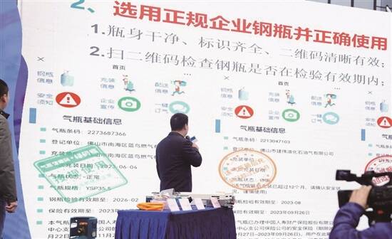 林新平提醒市民,用气环境须符合安全用气条件,使用燃气时,须留意用气场所是否保持通风良好、干燥,且不受日光长期曝晒;钢瓶不得存放在卧室、客房、地下室或密闭空间、密封橱柜内,存放钢瓶的橱柜通风口应位于橱柜门的下方;钢瓶、炉具、热水器周围不能存放易燃易爆、腐蚀性物品。在使用瓶装燃气时,要采用瓶身干净、标识齐全、二维码清晰有效的钢瓶燃气,同时要扫二维码检查钢瓶是否在检验有效期内。此外,市民要选用正规合格减压阀,规范连接使用长度2米内燃气专用金属连接软管,并选用合格燃气器具。