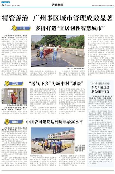 2023年,增城区城管部门联合管道燃气企业加快配套燃气管道建设,为东部枢纽核心区配套产业项目建设燃气管道9.36公里,与东部公铁联运枢纽同步规划建设燃气管道3.5公里;同时加密开发区管网,新建燃气管道4.2公里,为重大平台项目提供可靠的能源保障。