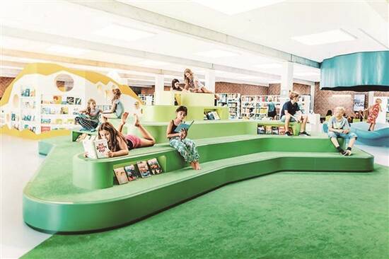 舒适性则体现在图书馆的标识标牌是否醒目、导向是否简明易懂、采光是否合理、桌椅尺寸是否符合人体工学等。在为儿童做空间设计时,设计师通常会对一些元素的尺度进行缩放,即人们常说的“用一米的高度看世界”,合适的尺度背后是让孩子们能够“平视”自己生活世界的诉求。