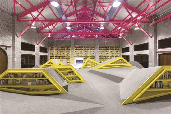 除了空间的开放性外,儿童图书馆的趣味性也是激发儿童探索学习的重要因素,趣味性设计能从心理上满足他们对知识的渴求。如何在设计布局上实现“妙趣横生”的效果,关键在于对空间的色彩、材质、形态、智能等方面的考究是否能够引起儿童的探索心理,从而增强他们的空间参与兴趣,实现一种将兴趣与玩乐与学习相融合的空间模式。
