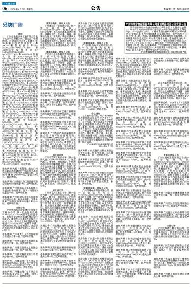 遗失声明 广州市九州实业发展有限公司遗失营业执照正、副本,统一社会信用代码:91440115MA9YCTBN7P,编号S1012023022444G,现声明作废。