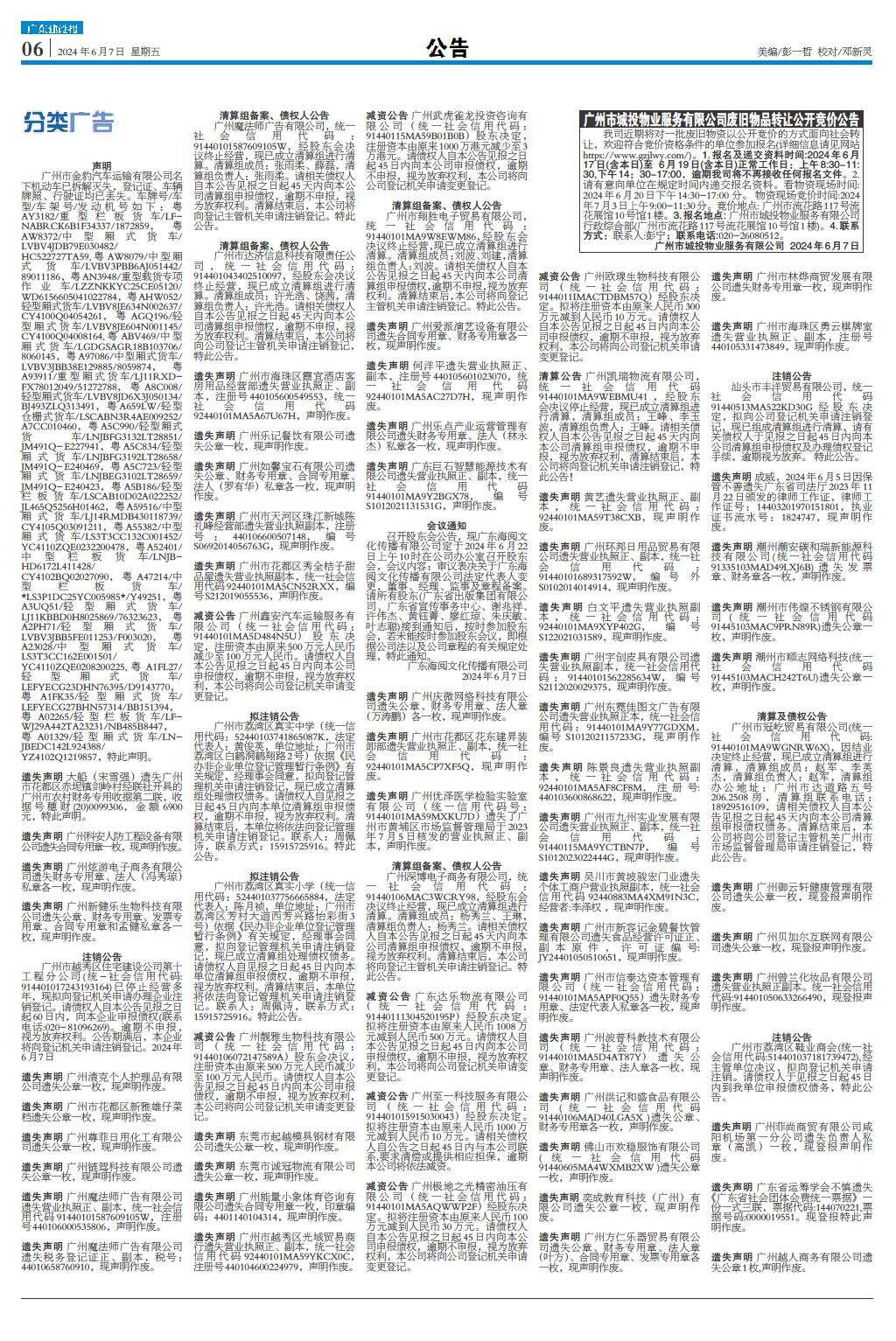 广州市城投物业服务有限公司废旧物品转让公开竞价公告