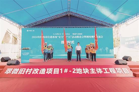 作为珠海市住建系统“安全生产月”活动推进会观摩项目,翠微旧村改造项目1#-2地块主体工程位于珠海市香洲区,是珠海市重点项目,总建筑面积约14.34万平方米。该项目计划采用“整体拆建+局部保护”改造方式,打造现代化高品质社区。其中,安全标准化管理是项目建设的一大亮点。项目通过标准化工地大门、标准化喷淋系统、标准化安全通道、标准化防护网片等45项标准化举措夯实安全基础;同时采用中建安全智慧平台,着手打造中建“136工程”安全板块,把线下的工作内容通过平台应用融入智慧平台实现减负,以数字化推进安全管理行为流程化、标准化,提高安全管理效能。