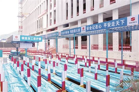 “深圳盐田生命健康产业园”是特区建工集团投建营一体化开发的“工业上楼”项目,占地面积4.13万平方米,总建面29万平方米,是深圳市委、市政府聚焦海洋经济、高端医疗器械、大健康产业集群建设,着力打造的集生产、研发、公共服务于一体的现代化专业化产业园区,获评深圳市安全文明“双优工地”。本次观摩会紧扣“人人讲安全,个个会应急——畅通生命通道”主题,现场设置了党建引领+安全生产、CIM·BIM+安全生产、标准化+安全生产、新技术+安全生产、绿色建造、创新成果、招商展区7个展区及“工业上楼”展馆,全方位展示了项目在党建引领安全生产、智能建造驱动管理升级、精细管理提升安全标准等方面的先进管理经验和成熟施工工艺,为广东省建设工程安全质量及智慧管理提供范例。