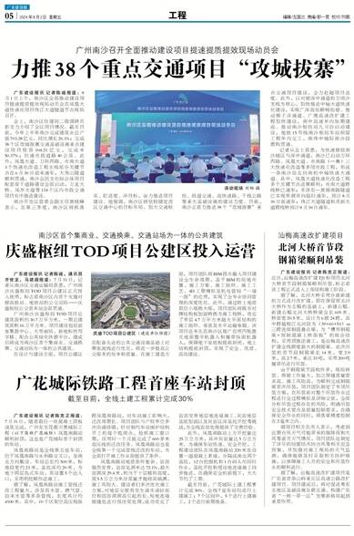 截至目前,广花城际土建工程累计完成30%。全线7座车站均进行土建施工;7个区间中,5个进行土建施工,2个进行前期准备。