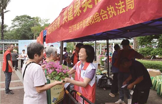 据了解,江门是广东最早将簕杜鹃确定为市花的城市。40多年来,簕杜鹃深受江门市民喜爱,在公园、道路、河岸、天桥、住宅区都可见到它们的身影。“我们将簕杜鹃赠送给大家,希望大家一起做市花的推广者,让簕杜鹃成为绿美侨都的一张亮丽名片。”江门市城市管理和综合执法局有关负责人说,江门鼓励市民家庭种养市花,把城市之美从街头延伸到家中,不断提升城市绿化美化水平。据悉,江门已持续22年开展市花送市民活动,累计送出超10万盆市花。