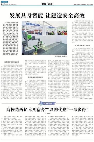 “在装饰装修中,目前更多的还是人机协同,用机器辅助工人施工,达到整体的降本增效,同时提升对质量的管控。”南京市城乡建设委员会相关负责人表示,下一步,将持续推进智能装备在建设工程中的应用。