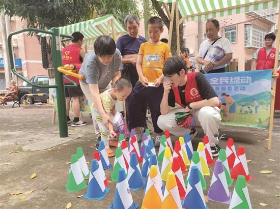 社区变“绿色秀场”。在茂南区荔红社区“旧物流通市集”,居民通过“以物换物”实现闲置书籍、玩具的循环利用,志愿者现场讲解旧物分类处理流程,推动“源头减量”理念深入人心。亲子家庭参与“小手拉大手”趣味游戏,在欢声笑语中掌握垃圾分类技巧。