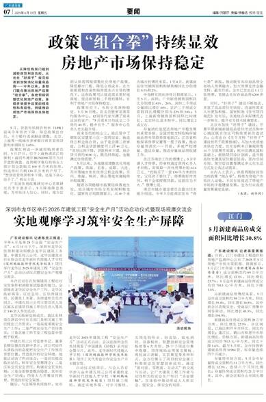 广东建设报讯 记者陈克正报道:今年6月是第24个全国“安全生产月”。6月11日下午,深圳市龙华区住房和建设局联合龙华区建筑工务署、中建五局三公司、龙华区建筑业行业协会在龙华新时代技能人才学校(深圳鹏城技师学院龙华校区)项目举行龙华区2025年建筑工程“安全生产月”活动启动仪式暨安全生产观摩交流会。