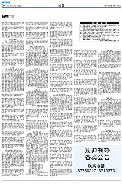 遗失声明 广州领冠生物科技有限公司遗失公章一枚,现声明作废。