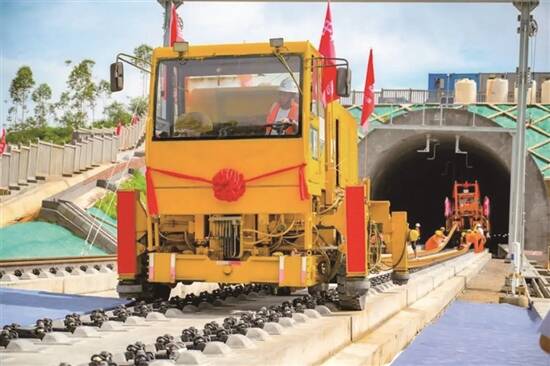 为提高铺轨效率、确保铺轨施工安全按期推进,项目团队采用先进的铺轨技术和设备,提前在阳江铺轨基地以及红海焊轨厂储存长钢轨,以两处存轨地为起点进行双向对铺,施工效率大幅提升;在阳江北站设立铺轨调度指挥中心,采用智能行车调度系统和车载监控系统,通过集成无线网络传输、定位导航等技术,实现铺轨作业管理的信息化和可视化,保证交叉施工安全有序推进,每天单向铺轨可达14公里。
