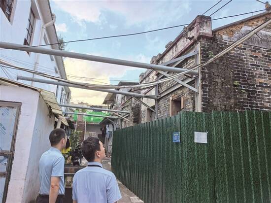 广东建设报讯 记者姜兴贵,通讯员郭娟、唐永国报道:“危房不住人、人不住危房!”9月23日傍晚,在台风“桦加沙”来临前,深圳龙岗住建局对龙城街道郭屋村3栋隐患房屋进行“回头看”,锈蚀钢结构加固完成、警示围挡全部换新。至此,龙岗区已对存在严重安全隐患的房屋已全部落实“楼栋清空、封闭围挡、专人巡查”硬措施,为迎战台风筑起一道“铜墙铁壁”。