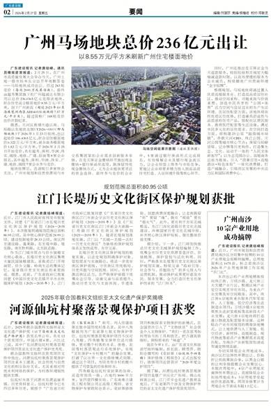 广东建设报讯 记者唐培峰、通讯员穗规资宣报道:2月25日,在广州市高质量发展大会举办当天,广州土地一级市场率先交出开年亮眼答卷——马场地块成功出让。经过243轮竞价(每次2000万或其倍数),最终由越秀集团旗下的广州越诚达有限公司以总价236.0365亿元竞得该地块,折合住宅成交楼面地价8.55万元/平方米,创下广州新高(超过2023年10月海珠琶洲西区AH040331地块的7.57万元/平方米),超过面粉厂148轮竞价出价次数纪录。