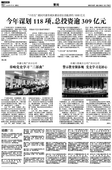 广东建设报讯 记者廖惠康、通讯员刘琳报道:中建七局广州分公司党总支自启动党史教育以来,不断丰富党史学习教育形式和内容,围绕“三立足”,奏响党史学习“三部曲”。 立足“
