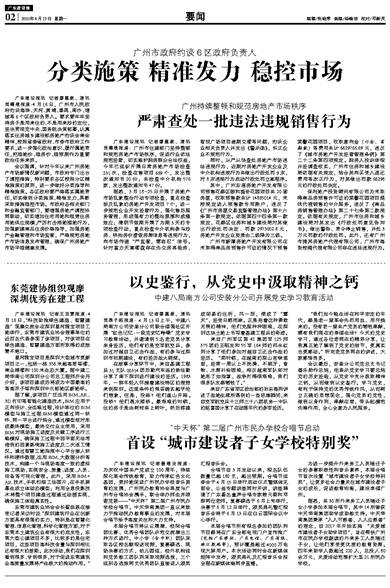 广东建设报讯 记者廖惠康、通讯员穗建报道:4月16日,广州市人民政府约谈海珠、天河、黄埔、番禺、南沙、增城等6个区政府负责人。要求要牢牢坚持房子是用来住的、不是用来炒的定位,坚