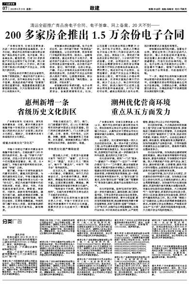 广东建设报讯 记者王亚雯报道:为进一步优化房屋网签备案服务,自4月份起,清远市住房和城乡建设局全面推广商品房电子合同、电子签章、网上备案业务。截至目前,已有200多家房地产开发