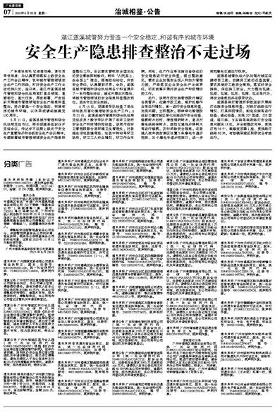 广东建设报讯 记者唐培峰、通讯员李佳报道:为认真贯彻落实上级安全生产工作会议精神,筑牢城市管理领域安全生产工作防线,打好安全生产工作主动仗持久仗,连日来,湛江市
