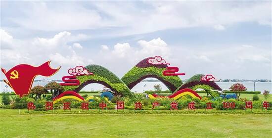 广东建设报讯 记者刘洁、通讯员钟娜报道:7月1日—10日,湛江市城市管理和综合执法局举办以“朵朵葵花向太阳 同心向党颂华诞”为主题的“七一”花展,在全市范围内打造约6万平方米的灿烂花海,为市民献上一场视觉盛宴。 据湛江市城市管理和综合执法局负责人介绍,此次花展以代表忠诚、光辉的向日葵为主花材,优选10多个品种30万余株向日葵,种植20多个品种6万盆三角梅,配以40多万盆时花相互映衬。 在景点布置方面,在南国热带花园、海滨公园、渔港公园、寸金公园等市区公园内设置12组中大型景点,将庆祝建党100周年活动标识巧妙地融合到花景中,利用丰富的花卉和绿色植物营造出爱国爱党爱人民的意境,表达一心一意跟党走的昂扬斗志,让人们游园赏景中感受到百年党史的波澜壮阔,汲取砥砺奋进的精神力量。 同时,在湛江市重点道路、公园、景区、重要公共场所,以三角梅、百日草、醉蝶花、穗冠等红色系时花为主打造创意花境及营造喜庆氛围,让市民漫步城市大街小巷中深切感受美好生活。此外,对主次干道、重要节点的1万多盆红花勒杜鹃进行精心控花,确保“七一”期间如期盛放,营造欣欣向荣、生机勃勃的浓厚氛围。 为营造流光溢彩的欢乐气氛,人民大道、海田路、西城快线、赤坎广州湾大道、观海北路等5条主要道路共439基灯杆悬挂建党100周年庆祝活动标识和鲜红的国旗,并在重点道路、公园、景区、重要公共场所设置“热烈庆祝中国共产党成立100周年”LED宣传牌,加强滨湖公园A区广场、金沙湾广场、霞山观海长廊等9处灯饰的维护亮化,让美丽花景与城市夜景交相辉映,点亮缤纷七月。