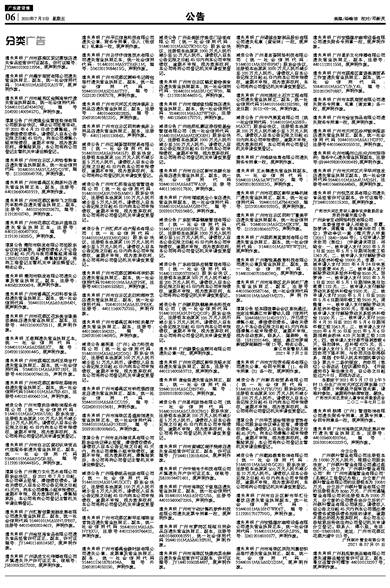 遗失声明 广州市荔湾区梁记蒸饭店遗失食品经营许可证副本,许可证编号:JY24401030213994,现声明作废。 遗失声明 广州晨宇商贸有限公司遗失营业执照正、副本,统一社