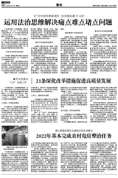 广东建设报讯 记者廖惠康、通讯员穗建报道:7月7日,广州市住房和城乡建设局发布《广州市城市更新条例(征求意见稿)》(以下简称《条例》),面向公众征询意见。 《条例》共八章五