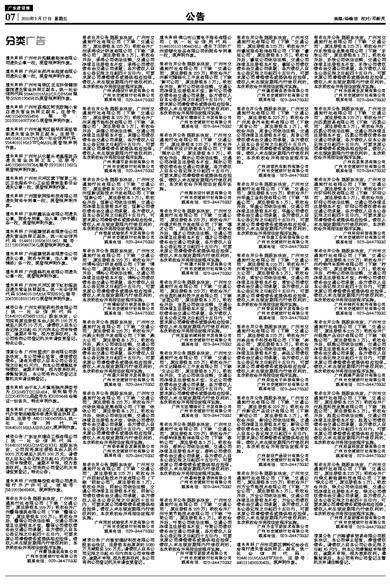 遗失声明 广州市升泓健康咨询有限公司遗失公章一枚,现登报声明作废。 遗失声明 广州兴车邦汽车租赁有限公司遗失公章一枚,现登报声明作废。 遗失声明 广州市海珠区玉足轩保健按