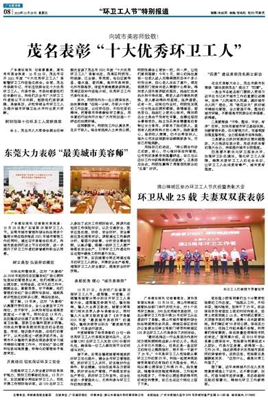 广东建设报讯 记者誉建业、通讯员彭碧云报道:10月26日,佛山市禅城区城管执法部门举行庆祝大会,对6个优秀环卫集体、298名优秀城市美容师、10名从事环卫工作至今满25年的环卫从