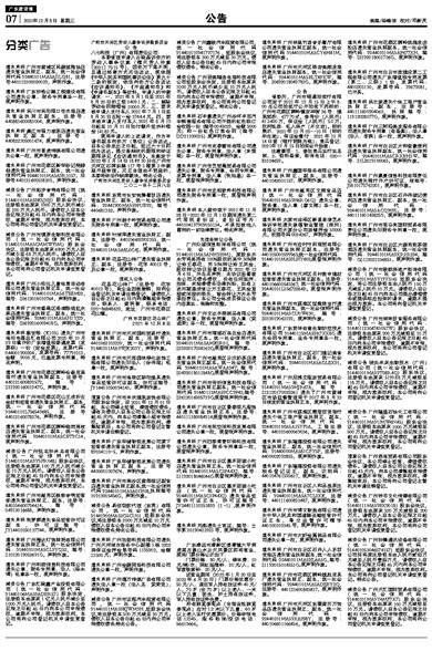 遗失声明 广州市黄埔区吴源城粮油店遗失营业执照正、副本,统一社会信用代码92440101MA5AJ1LQ81,注册号440112300020029,声明作废。 遗失声明 广东轩浩公