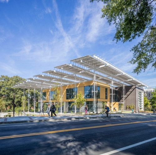 英国著名的建筑设计网站Dezeen,由Marcus Fairs 创建于2006年11月,经过15年的发展,目前已成为全球访问量最大的 4000 个网站之一,以及是世界上评论最多的设计网站。 Dezeen网站,号称世界上最受欢迎最具影响力的建筑、室内设计在线杂志,旨在为有需要的同行、朋友提供精心挑选的最佳建筑设计和室内设计项目以及来自世界各地建筑设计等方面的新闻,每月拥有超过300万读者和 600万社交媒体粉丝访问。 ——编者注 气候变化是人类面临的全球性问题,随着各国二氧化碳排放,温室气体猛增,对生命系统形成威胁。在这一背景下,世界各国以全球协约的方式减排温室气体。习近平主席也在第七十五届联合国大会一般性辩论上的讲话中指出,中国宣布将提高“国家自主贡献”力度,力争2030年前二氧化碳排放达到峰值,努力争取2060年前实现碳中和。 在建筑行业,低碳建筑在全球兴起,各国政府通过减少建筑物中的碳排放从而降低温室气体的排放量。近日《Dezeen》总结了2021年全球十大低碳建筑,包括由 3D 打印粘土、回收材料和生物材料制成的建筑,其中对气候最友好的是零净排放甚至负碳项目,这意味着它们将从大气中去除尽可能多的二氧化碳,为低碳建筑的发展作出贡献。 /1/ 意大利 Tecla 住宅 (Mario Cucinella Architects 、WASP) 该住宅在意大利的马萨隆巴达打印,由两个相连的圆顶形体量组成,外墙有棱纹,外墙由 350 层 3D 打印粘土堆叠而成。粘土排列成起伏的层,不仅提供结构稳定性,而且还起到隔热的作用。 施工团队表示,通过使用3D打印技术,可以在 200 小时内建造房屋模块,同时平均仅消耗 6 千瓦的能源,减少了典型的建筑垃圾。粘土取自当地,可以一次又一次地回收利用,此住宅旨在为气候难民提供低成本的紧急住房,而不会导致全球变暖。 /2/ 瑞典Sara Kulturhus 中心 (White Arkitekter) 这座位于瑞典 Skellefte的文化中心由White Arkitekter设计,是世界上第二高的木塔,其设计团队称,经过对其进行50年的生命周期分析,建筑物内使用的木材吸收的碳将是建筑物建造期间排放的隐含碳的两倍。 作为其COP26 虚拟展馆的一部分,英国绿色建筑委员会将其列为“示范性可持续项目”,该建筑选择使用工程木材进行建造,以充分利用当地资源,同时在距离现场约 30 英里的锯木厂加工。建筑物屋顶上的地热热泵和 1,200 平方米的太阳能电池板将为建筑物提供大部分电力,而其余电力则由可再生能源提供。 /3/ 印度尼西亚The Arc (Ibuku) 快速生长的竹子被弯曲成 14 米高的拱门,形成支撑巴厘岛绿色学校体育馆的双曲面屋顶,为一个建筑面积为 760 平方米的多功能运动场提供了庇护。 该屋顶的设计旨在使用最少的材料,同时提供最大的占地面积。顶篷顶部的通风口可以让暖空气逸出,而底部周围的开口则提供自然通风,无需在岛上的热带气候中使用空调,从而达到减少能源使用的目的。 /4/ 美国Kendeda 大楼 (Miller Hull Partnership and Lord Aeck Sargent) Kendeda 大楼位于美国亚特兰大市中心,由回收的砖石和废弃电影布景中的木材等回收材料制成,被视为学习中心和教学工具,用于对亚特兰大佐治亚理工学院的学生进行可持续设计教育。 该设施最近获得了总部位于西雅图的国际未来生活研究所的“生活建筑挑战”认证——世界上最严格的绿色建筑认证计划之一。该设施被认为是一座“再生建筑”,其顶部有一个由钢柱支撑的巨大白色天篷,除了提供遮阴外,组成天篷的900 多个太阳能电池板形成一个 330 千瓦的阵列,产生的电力足以超过建筑物的能源需求。此外,水回收也是该建筑可持续设计的一部分。雨水被收集、处理并用于水槽、淋浴和饮水机。反过来,灰水(即厨房用水、沐浴用水和清洗水等)被引导到人工湿地,经过处理并用于支持附近湿地的植被。 /5/ 英国2021蛇形馆 (Counterspace) 南非工作室Counterspace 将今年的蛇形展馆设计为不同移民社区的混搭,并把它们分散于伦敦周围。该项目以黑色软木板装饰,并最终以包裹在钢铁框架上的胶合板呈现。 尽管该项目因其在地基中使用排放密集型混凝土而受到批评,但相关报告显示,即使考虑到建筑物的建造以及整体结构的拆除和运输过程中所产生的碳污染,该建筑仍通过其生物材料从大气中去除了 31 吨碳。 /6/ 英国格林德伯恩槌球馆 (BakerBrown 工作室) 这一槌球馆位于英国格林德伯恩歌剧院,BakerBrown 工作室根据循环经济的原则,依靠废物的使用来帮助最大限度地减少建筑物的碳足迹,并创造出一种可拆卸和重复使用的可逆设计。 患病的白蜡树将被回收以作为建筑的整体结构,同时,丢弃的香槟软木塞被收集起来并与有菌丝粘合在一起作为内部镶板,外部则覆盖着由废牡蛎和龙虾壳制成的瓷砖。每种材料都以一种允许可被拆解的方式结合在一起,这意味着它们将用螺栓固定而不是粘合在一起,以确保其可回收性和再利用性。 /7/ 英国剑桥中央清真寺 (Marks Barfield Architects) 这座位于剑桥的建筑入围 2021 年斯特林奖,这一建筑利用木材制成结构墙和树状柱,这些柱子连接起来形成了支撑屋顶的八角形天篷,同时木材也可作为碳储存材料将碳固定。 室内可全年自然采光和通风,太阳能电池板可满足建筑物的所有冷却和热水以及 13% 的供暖需求,而收集的雨水可用于冲洗厕所和灌溉。 /8/ 冰岛生活景观 (Jakob+MacFarlane 、T.ark) 这座混合用途建筑位于雷克雅未克的一个前垃圾填埋场,于 