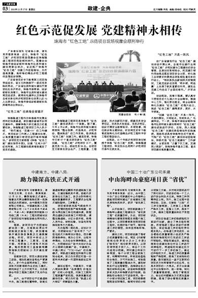 广东建设报讯 记者陈小珊、通讯员郑煜琪报道:近日,珠海市“红色工地”示范项目现场观摩会在珠海隧道工程项目现场顺利举行。观摩会由珠海市委组织部和珠海市住房和城乡建设局联合举办,旨在推广珠海市