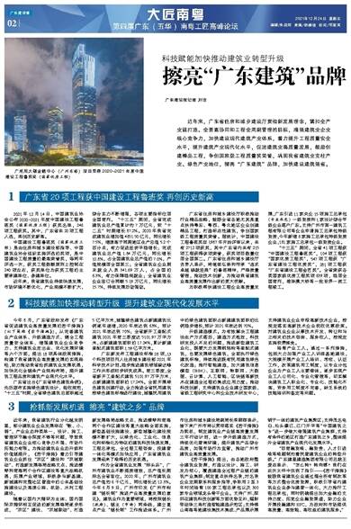 广东建设报 2021年12月24日 星期五 02 第四届广东( 五华 )南粤工匠高峰论坛 编辑/朱启同 美编/杨榆洁 校对/邓新灵