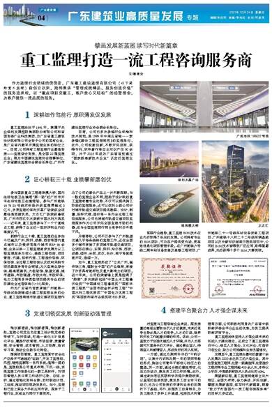 文/誉建业 作为监理行业领域的佼佼者,广东重工建设监理有限公司(以下简称重工监理)自创立以来,始终秉承“管理成就精品、服务创造价值”的服务追求观,以“重点项目交重