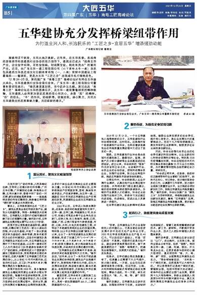 2021年12月24日 星期五 广东建设报 B5 编辑/朱启同 美编/李尚松 校对/邓新灵 第四届广东( 五华 )南粤工匠高峰论坛