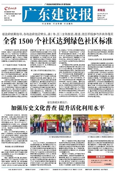 广东建设报讯 记者刘洁、通讯员岳建轩报道:记者从广东省住房和城乡建设厅获悉,2021年,广东省印发《广东省绿色社区创建行动实施方案》,科学有序推进绿色社区创建行动。截至12月底,