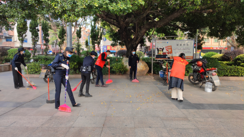 玉兰女子执法队和志愿者在打扫街道 |